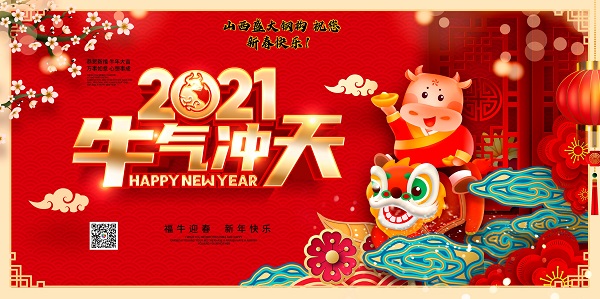 值此新春佳節(jié)到來(lái)之際,山西盛大鋼結(jié)構(gòu)工程公司全體員工祝大家身體健康!新春大吉!愿大家歲歲常歡愉,年年皆勝意。2021牛氣沖天!